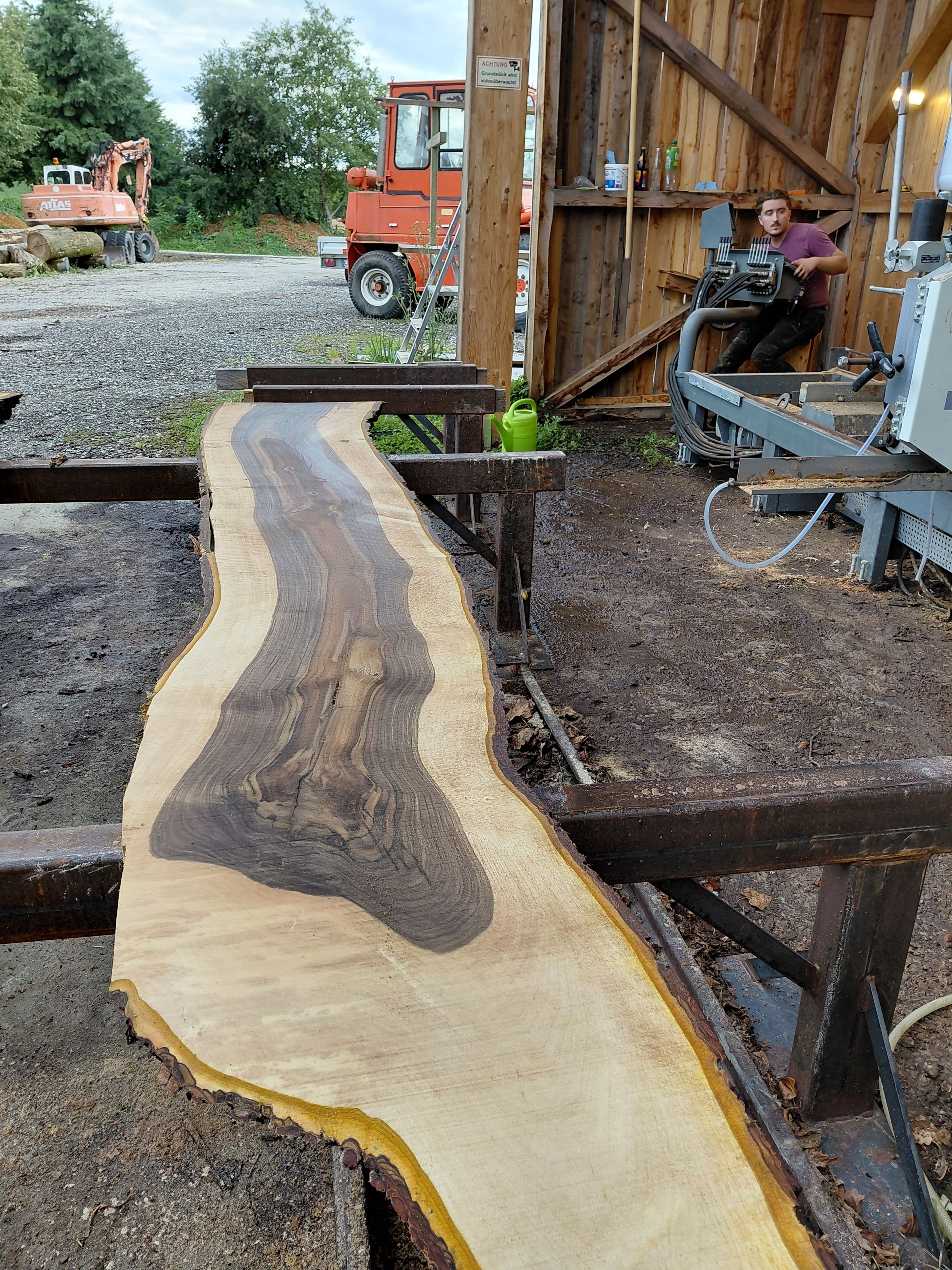 Wir übernehmen den Lohnschnitt für das Holz unserer Kunden. Oft steht im Bestand ein einzelner Laubbaum oder Edelholzstamm – zum Beispiel Eiche oder Esche. Wir bieten an, diese Stämme direkt mitzunehmen und in unserem Sägewerk nach Wunsch zu schneiden – als Bretter oder Kanthölzer, die Sie anschließend selbst weiterverarbeiten können, etwa zu Tischplatten, Möbeln oder anderen Projekten. Der Schnitt erfolgt präzise, sauber und nach Ihren Vorgaben. So bleibt der Wert Ihres Holzes regional und fachgerecht genutzt